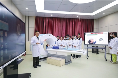 ■甘肃省卫生职业学院的学生在医学影像实训中心进行情景模拟课程 新华社 发