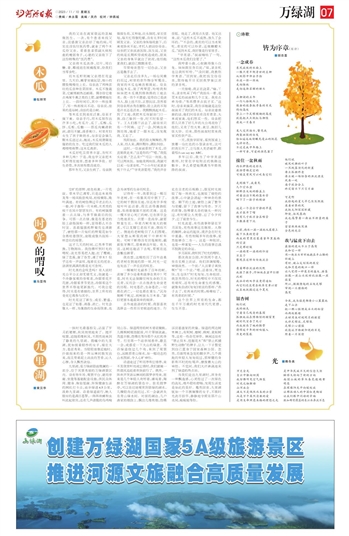 一抹时光滑落指尖,沾湿了岁月的裙裾,秋风悄悄地来了。抛开喧嚣,追随那缕秋风,不期然地来到了静美的九里湖。晨曦中的九里湖,犹如披着轻纱的女子,端庄大方,羞涩秀美。当轻轻地靠近她时,扑面而来的是一阵从林间散发出来,而且带着泥土淡淡的芳香,沁人心脾,令人飘然欲仙。