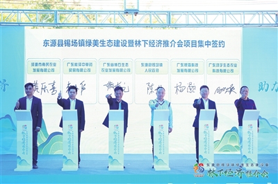 ■昨日,东源县锡场镇举行绿美生态建设暨林下经济推介会,现场多个项目签约,签约金额达4500万元。 雷宇烁 余云燕 摄