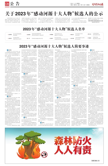 为培育和践行社会主义核心价值观,弘扬传统美德,河源市文明办组织开展了2023年“感动河源十大人物”评选活动。经各地各部门和群众推荐、“感动河源十大人物”评委会评审,评出2023年“感动河源十大人物”候选人10名。为体现公开、公正、公平的原则,现将2023年“感动河源十大人物”候选人名单及简要事迹予以公示,征求广大群众意见。