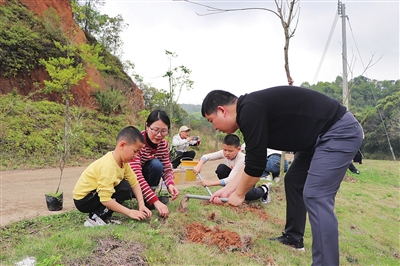 ○本报讯 记者 张平 特约记者 廖志良 近日,位于江东新区辖区内的广东省东江林场联合东江林语自然教育基地开展亲子植树活动,来自市区及其他县区的50多组家庭参与活动,助力绿美江东生态建设。