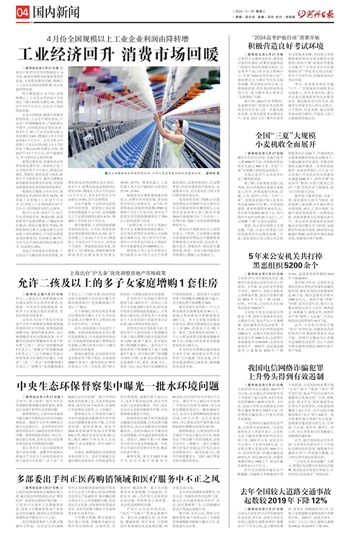 ○新华社北京5月27日电 国家统计局27日发布的数据显示,4月份,随着宏观组合政策效果持续显现,市场需求继续回暖,规模以上工业企业利润由降转增,企业效益持续恢复。
