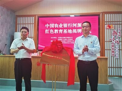 5月28日,“中国农业银行河源分行红色教育基地”揭牌仪式在啸仙故里——东源县义合镇下屯村举行。揭牌仪式上,河源农行还与当地“百千万工程”典型村党组织开展党建共建签约。市委宣传部、东源县以及河源农行相关领导出席活动。