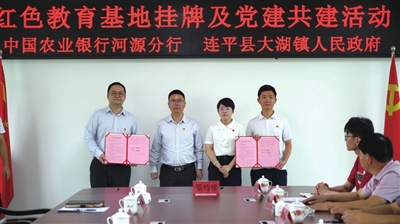 揭牌签约仪式上,河源农行有关负责人表示,此次红色教育基地挂牌,是该行加强党员干部及广大员工党史学习教育和传承红色基因、走好新时代长征路的重要举措,也是该行创新党建品牌载体和培育中国特色金融文化的生动实践。开展基层党组织党建共建签约,是双方以红色教育基地为纽带,实施结对帮扶、深化党业融合的有益探索。今后,该行将深入落实金融工作政治性、人民性要求,坚守“服务乡村振兴的领军银行”和“服务实体经济的主力银行”两大定位,持续做好金融服务“五篇大文章”,为全市推进“百千万工程”加速提质贡献农行力量。