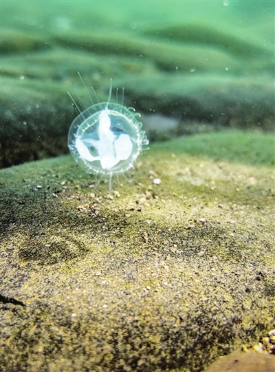 小图:“水中大熊猫”桃花水母。桃花水母对生存的水环境和水质状况要求极高,它的现身是万绿湖水质极佳的生动注脚。本报记者 李何山 摄