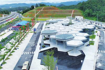 ■龙寻高速吉祥服务区。该服务区建筑外形设计灵感来源于我市市花簕杜鹃。本报记者 杨坚 摄