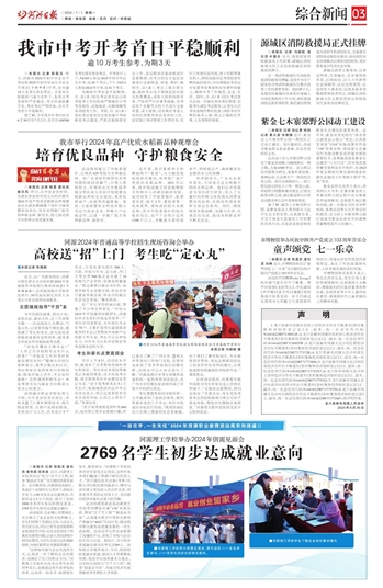 ○本报讯 记者 邹茹玉 通讯员 黄华添 邱泽浩 近日,河源理工学校举办以“助力‘百千万工程,服务‘制造业当家’”为主题的供需见面会。在市教育局、河源国家高新区、各县区工业园的大力支持下,政校企齐发力,130多家企业应邀参加,共提供近1.5万个岗位,吸引了该校3000多名学生参与供需见面会,2769名学生初步达成就业意向。