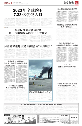 ○新华社罗马7月24日电 联合国机构24日发布报告说,全球消除饥饿的步伐不进反退,食物不足水平与15年前相当。2023年全球约有7.33亿人面临饥饿,每11人中就有1人食不果腹。