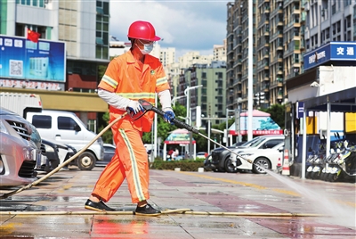 在城区主次干道上,随处可见环卫工人清扫路面杂物的忙碌身影。他们不怕脏、不怕累,恪守着“城市美容师”的职责与本分,即使在这样的高温天气下,仍然保持城市的清洁和美丽。