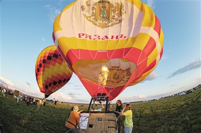 ■ 8月9日,在俄罗斯梁赞州,团队成员为热气球充气。
