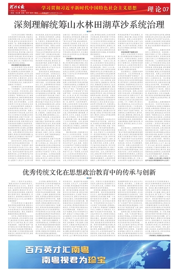 统筹山水林田湖草沙系统治理,并非简单的治理技术革新,而是从思维方式、理论认识、制度体系到实践路径的全方位创新,既根植于中华优秀传统生态文化,又推动马克思主义自然观、生态观与时俱进,彰显了习近平生态文明思想的真理力量和实践伟力。