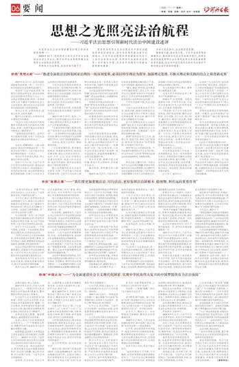习近平法治思想系统阐明全面依法治国一系列根本性问题,恰如一座指明航程的灯塔,照亮中国特色社会主义法治道路,为法治中国建设提供行动指南。