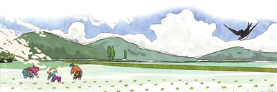 清晨的山坳上,有一个女孩在喊:“龙哥,快点,等你呢!”