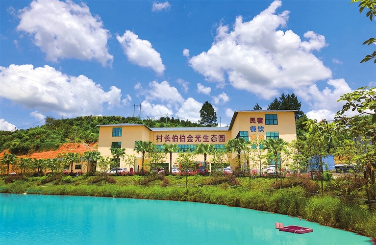 据了解,近年来,金光村“两委”干部和扶贫工作队创新发展理念,与广东村长伯伯电子商务公司合作,打造“村长伯伯”品牌,建立村长伯伯“互联网+农村旅游”综合资源服务平台,提供旅游接待、餐饮、农产品电商展示、办公等服务。其中,占地220亩的金光生态园就是依托“村长伯伯”品牌打造的线下旅游示范点,提供民宿、采摘园、水上乐园、QQ农场、露营、户外拓展等多功能旅游服务。据统计,村长伯伯平台自运行至今,已累计实现营业额500万元,每年为金光村创收15万元。