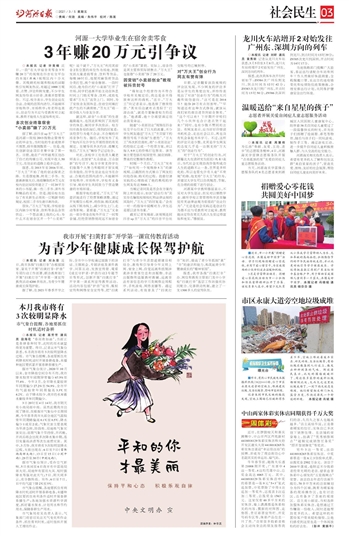 ○本报讯 记者 许竞楠 近日,一段“在大学宿舍卖零食3年赚20万”的视频在抖音社交平台的本地(源城)视频区内十分火爆。其吸睛的标题和较高的话题性引发网友热议,有超过1000万观看、点赞、评论和转发量,不少学生网友纷纷表示好奇、羡慕并想要效仿。不过,校方表示,学生创业应在合法、合规的范围内进行,不能破坏学校秩序、市场秩序;有老师也表示,创业行为不应与受教育对立起来,教育才能使人生富裕和充实。