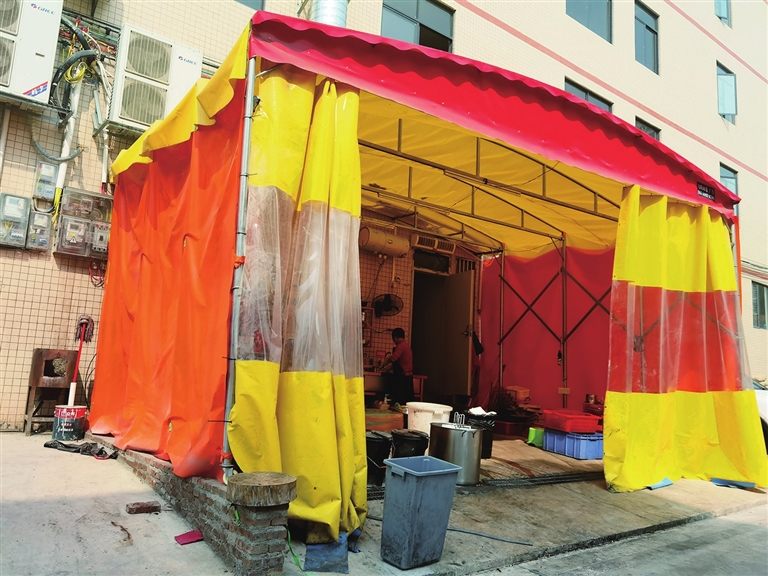 记者来到市民反映的市区文昌路南,发现有的餐馆在后门的通道处摆放餐具、洗碗盆、垃圾桶等杂物,且还在其后门修筑水泥台阶,并搭建起钢架棚及固定洗碗台等,大部分公共区域被占为己有。“这里3家新开的餐饮店把本应设置停车位的地方给占用了,导致餐饮店员工的车辆不时直接停在路上,影响附近居民出行;同时,商户还将杂物、垃圾等直接堆放在后门,影响环境卫生,让附近居民苦不堪言。”在附近居住的陈先生告诉记者。