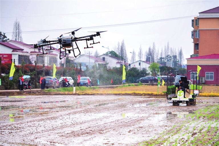 在湖南省的广袤田间,通过推广使用植保无人机、精量施肥机和生物制肥机,促进农业生产减药、减肥和减污,已经成为种田新时尚。