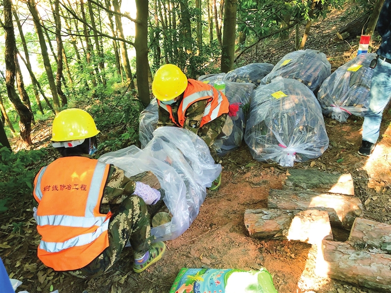 市林业局相关负责人告诉记者,林业有害生物的防治特别是松材线虫病的防治是一项长期的工作,需要因地制宜、多种防治方式相结合,在加大资金投入力度的同时,也要因地制宜创新工作方法和机制。记者获悉,去年以来,我市结合年度资金落实情况,在工作方式方法上不断创新,将松材线虫病防治工作分为防治示范项目及面上除治统筹推进辖区内松材线虫病防治工作。防治示范项目实行年期绩效承包,采取火烧、粉碎、套袋消杀、钢丝网罩等方式处理疫木,通过诱捕器、飞机喷药防治传播媒介松墨天牛,2020年挂设诱捕器防治面积10多万亩,飞机喷药防治面积5万亩。同时,我市对大树古树进行打孔注药保护,2020年注射药剂1.5万支,保护松树约3000株。