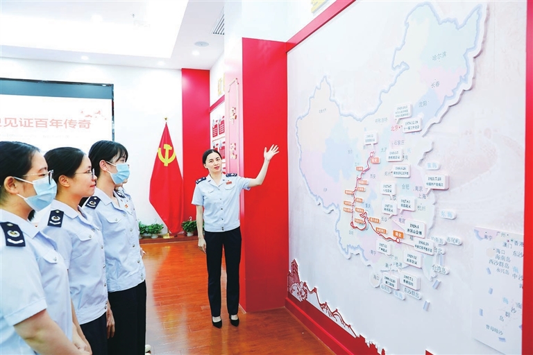 近日,东源县税务局的“党建空间综合体”成为局内党员干部打卡点,该综合体包含“一家一室一厅”,即党员之家、廉政清风室、党史学习教育主题展厅,充分运用文字说明15000余字,图片展示200多张以及音频、视频等多种呈现形式,全面展现了党的百年光辉历程及其所形成的精神谱系。