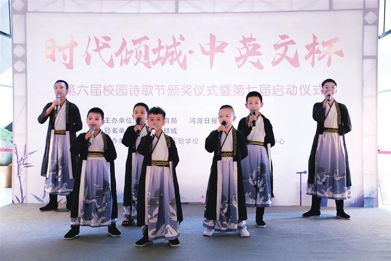前日,由市教育局、河源日报社联合主办的“中英文杯”河源市第六届校园诗歌大赛颁奖典礼在河源时代倾城隆重举行,同时“时代倾城·中英文杯”第七届校园诗歌大赛也正式启动。