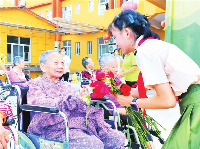■近日,市一小组织少先队大队委、队员和教师代表前往东源松柏敬老院,在重阳节来临前为老人们带去节日的慰问。活动中,队员们表演了精心准备的节目,并送上小礼物和慰问品,用行动表达对老人的爱。