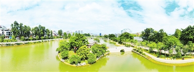 水动了起来,也活了起来。为巩固提升水生态文明建设成果,水生态综合整治工程完成后,紧接着,源城区委、区政府对鳄湖的现有景观进行改造,着力提升沿湖周边景观面貌。拆除部分水上构架桥,并结合河源本土文化,改造沿湖涉水岸线,精心策划并打造了莲花池广场、湖滨栈道、九曲排青、维芳岛、水下喷泉、月亮雕塑、水车等景观,同时对原有的古榕夕照、东门古楼、西门井、红花桥、鸣凤桥牌坊、对歌台等景观进行复建修整,刷新老城区的“绿色颜值”,为市民和游客提供游玩、散步的绿色空间。