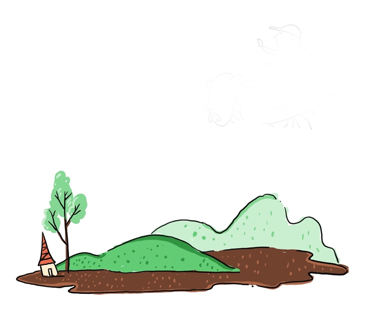 仙女新妆梳顶髻,野山浓黛泼松烟。