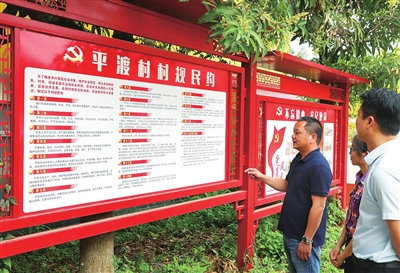 近日,记者在平渡村看到,一幢幢错落有致的房屋和宽阔的文化广场构成了赏心悦目的新农村美景,沿途村道摆放有垃圾箱,并设置有公共厕所,干净整洁。“实行村规民约‘积分制’后,不仅改善了乡村风貌,还让大家养成了勤俭节约、邻里和睦的好风气。”平渡村党支部书记、村委会主任曾远强说,实施村规民约“积分制”,有效地促进了村风文明转变。
