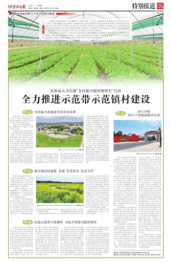 今年的中央一号文件——《中共中央国务院关于做好2022年全面推进乡村振兴重点工作的意见》明确提出,要以更大力度推动乡村振兴。为此,东源县提出大力实施“乡村振兴提质增效年”行动,全力推进乡村振兴示范带、示范镇村建设,努力实现农业强、农村美、农民富目标。