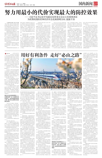 ○新华社北京3月20日电 “努力用最小的代价实现最大的防控效果,最大限度减少疫情对经济社会发展的影响。”习近平总书记在中共中央政治局常务委员会会议上的重要讲话为统筹疫情防控和经济社会发展指明方向、提振干劲。