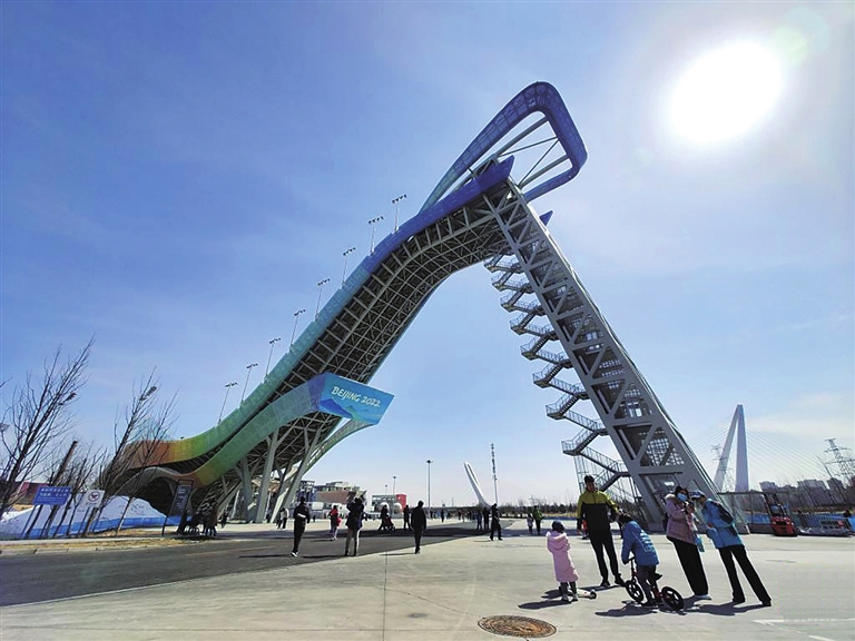 近日,北京市石景山区首钢园北区面向游客开放,其中包括作为北京2022年冬奥会比赛场馆的首钢滑雪大跳台部分区域,吸引了不少市民游客近距离参观打卡。