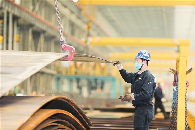 中建二局阳光智造有限公司主营装配式钢结构建筑、钢结构加工制作、铝合金模板以及建筑3D打印研发运用等业务,是龙川现代建筑工业产业的领头企业。在该公司钢结构生产车间内,技术工人们正在生产用于深圳一大型项目建设的钢结构产品(如图,冯晓铭 摄)。据悉,该公司自2017年落户龙川产业园以来,先后参建了深圳地王大厦、深圳市民中心、迪拜双子塔楼等国内外大型建筑工程。