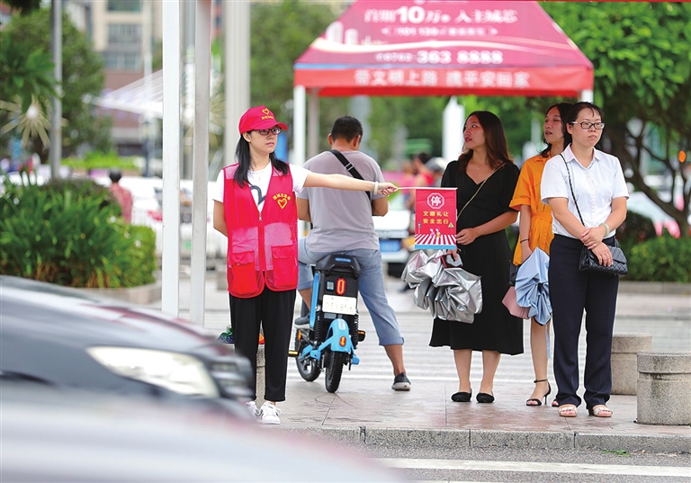 “每天上下学,警察叔叔就会在路口带着我们一起过马路。”就读于源城区下城小学的陈子欣说。在每个学校的路口前,不仅有交警驻守现场,更有来自各行业各单位的志愿者,引导车辆有序停靠等候,协助交警维护交通秩序,让学生安全出行得到保障,交通行驶更加文明。