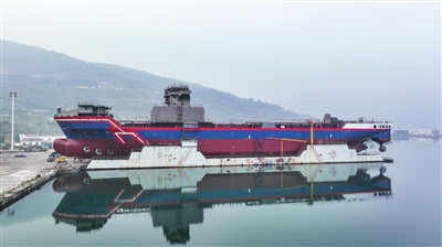 该船全长155米、宽23.2米,一次性载缆量可达1万吨,可以一次性完成从中国跨越太平洋的海底光缆铺设。该船在铺缆作业系统、新型吊放设备、全船电力推进等方面实现了自主开发和国内建造。据介绍,该船正在进行舾装,预计今年9月交付使用。