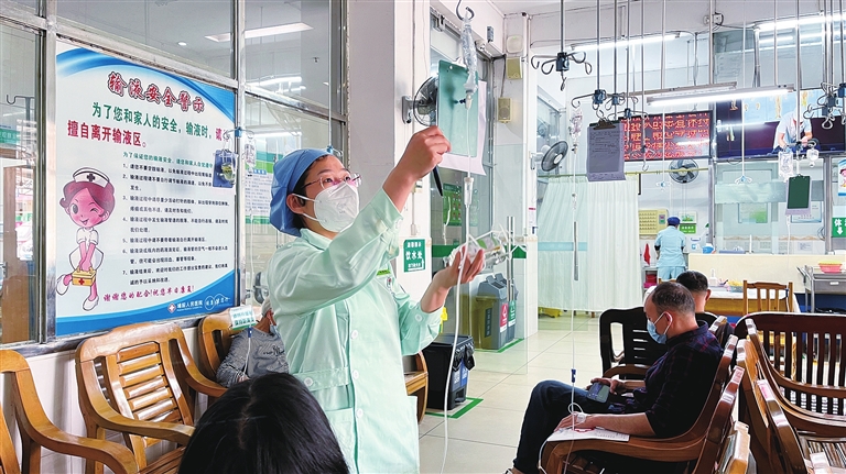 一次,一名患者就诊时因配药、核对、皮试观察等需要等待而产生误解,谩骂护士。“大爷,我们也想快,但流程就跟脾气一样,有急有慢,能让身体好起来,这都是小事呀。”在曾米丽耐心解释下,该患者表示理解并向护士致歉。