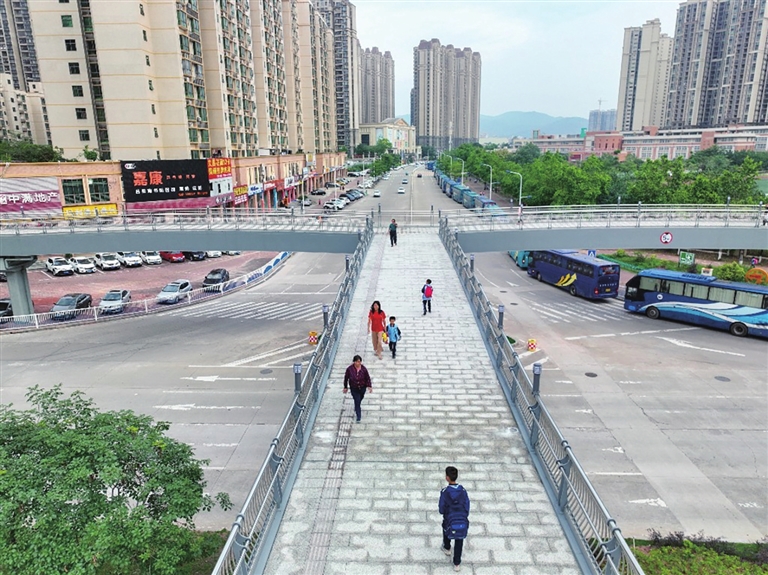 天桥的投入使用,感受最直观的便是附近的居民。“以前我们过马路总是担心,特别是孩子上学放学,非常危险。现在天桥建成了,我们出行更加安全便捷了,心情很舒畅。”送孩子上学的市民李彩群说。