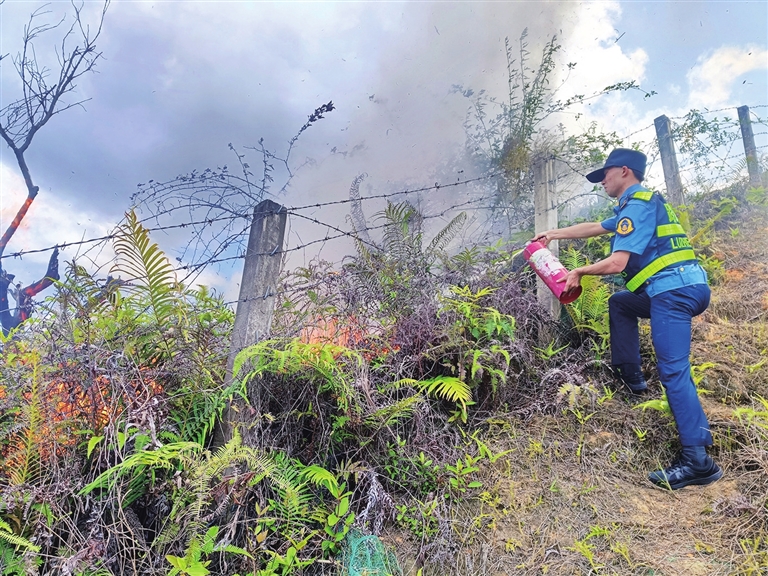 ○本报讯 记者 冯晓铭 通讯员 梁梓坤 近日,揭博高速公路一处边坡突然燃起大火,幸好路政员及时赶到现场,果断采取应急处置措施,有效控制火势,最后与紫金县消防救援大队消防员一起将火扑灭。