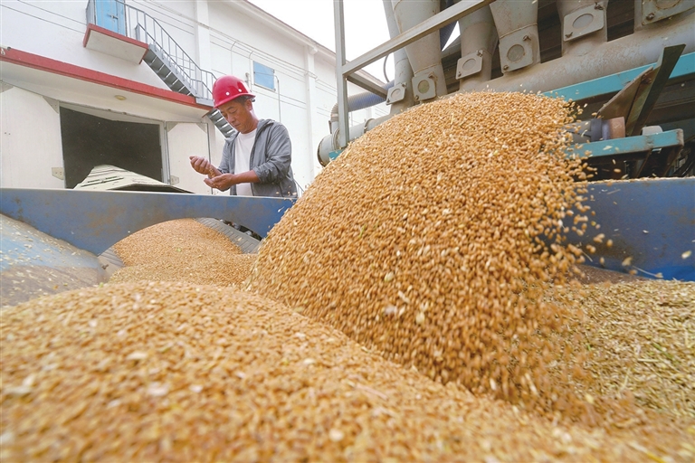时下,河北省邢台市柏乡县的夏粮收购工作全面展开,粮食企业忙着进行称重过磅、抽样检测、卸车入库等工作,确保小麦颗粒归仓。新华社 发