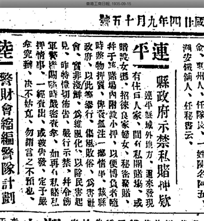 民国河源严厉禁赌 有基层公务人员殉职