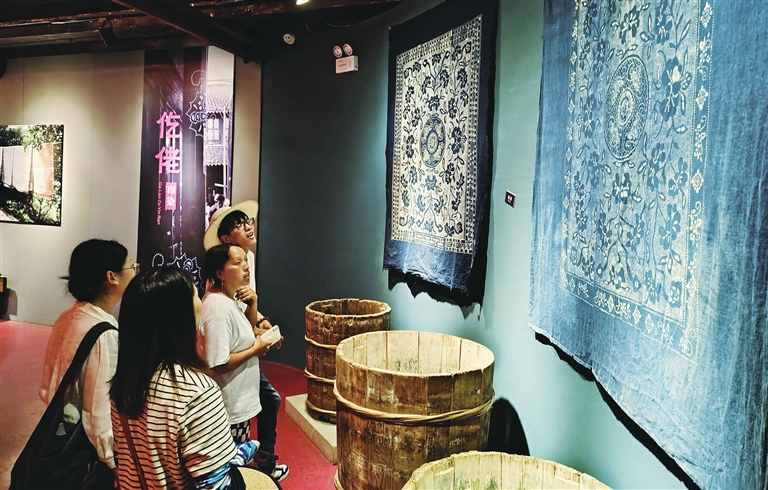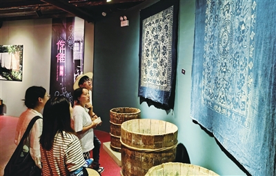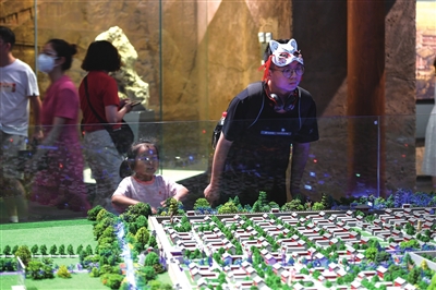 | ■ 7月16日,游客在贵州铜仁市石阡县万寿广场参观非遗博物馆。随着暑期到来,年平均气温只有17.3摄氏度的石阡县迎来了众多避暑游客,仙人街、温泉小镇等多个景区游客接待量同比均大幅提升,有力助推了乡村振兴。新华社 发 |