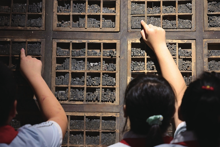 | ■7月20日,在河北省沧州市吴桥县河北线装书博物馆,吴桥县新华小学学生学习了解铅字印刷工艺。为丰富学生们暑期生活,河北省沧州市吴桥县开展了一系列暑期非遗研学体验活动,开放30余个非遗体验项目,让青少年面对面感受非遗魅力,促进非遗项目传承与发展。新华社 发 |