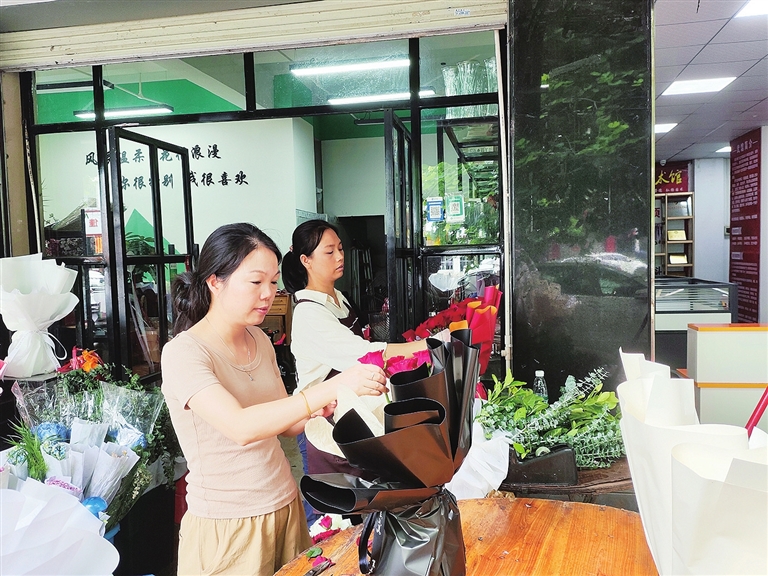 ○本报讯 记者 曾敏 节日的仪式感让七夕成为新的消费节点。昨日,记者走访多家花店、商场发现,商家纷纷抓住“甜蜜商机”,推出各类品种和优惠让利,带动“浪漫氛围”和“甜蜜经济”同步升温。