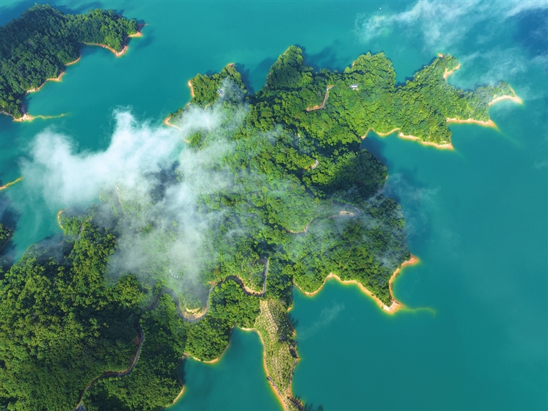青山叠翠、绿水悠悠,漫步在环山绿道中,满满的绿意迎面扑来,感受微风轻拂,聆听百鸟啼鸣,在悠然中细细品鉴万绿湖之美……这里是新丰江九里湖绿美广东生态建设示范点(下称九里湖示范点),是河源13个绿美广东生态建设示范点之一。