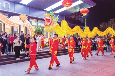 全市各地,姿态各异的“龙元素”装饰随处可见,绘就了一幅“龙舞人间”的古韵画卷。赏龙灯、舞龙狮,热热闹闹中国年,以汉服为代表的国风国潮热度不减,而龙年的“龙”重登场,用龙这一独具中国特色的传统文化元素来营造年味,更是丰富多彩。