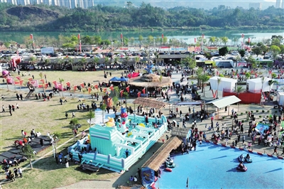 巨型龙猫、烟火集市、摆烂工场、放肆工厂、拾贝筑梦园、星空营地……大年初一,位于仙塘镇龙利村的贝拉小镇迎来了数千名游客,他们坐在草地上看蓝天白云、听乐队演唱、品特色美食,享受休闲舒适的春节。