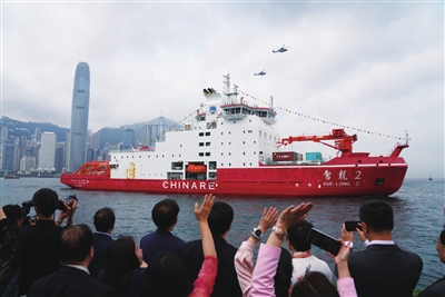 ○新华社香港4月8日电 在历经5个多月南极科学考察后,中国第一艘自主建造的极地科学考察破冰船“雪龙2”号8日首次到访香港,展开为期5天的活动。