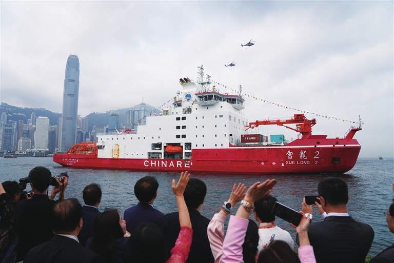 欢迎仪式上,香港特区行政长官李家超表示,“雪龙2”号是国家第一艘自主建造的极地科学考察破冰船,掌握多项关键技术,具有多项创新成果。他说,今年是中华人民共和国成立75周年,也是国家展开极地考察工作40周年。“雪龙2”号以香港作为回航首站,率先向广大香港市民展示极地考察的工作和科研成果,充分体现了中央政府对香港的重视和关爱。