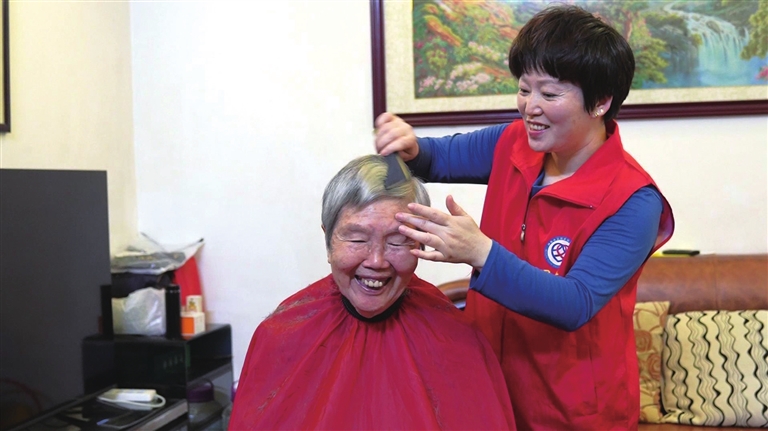 胡奶奶说:“出去理发不太方便,小周知道后,每次都主动上门为我服务,真是很感谢她。”