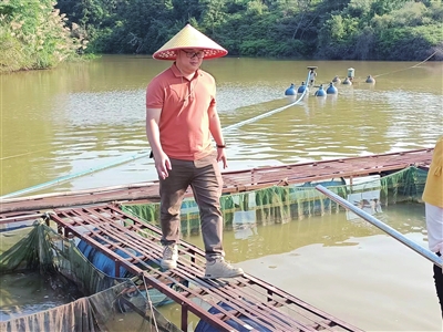 连日暴雨倾盆,给东源县水产养殖带来了不小的危害,令当地的养殖户担忧不已。在东源县农业农村局办公室里,东源县水产技术推广站站长戴远棠的手机响个不停。他不断地回电话、发信息,远程指导养殖户做好汛期防护。天气稍晴,戴远棠又马不停蹄地到养殖户的水产养殖基地巡查,帮助农户解决水产养殖问题。