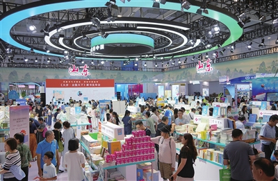 ■7月26日,读者在第32届全国图书交易博览会山东展区参观。当天,由国家新闻出版署主办、山东省人民政府和济南市人民政府承办的第32届全国图书交易博览会在山东济南开幕,线上线下共展出各类出版物70余万种。本届书博会将持续至7月29日,面向读者免费开放。